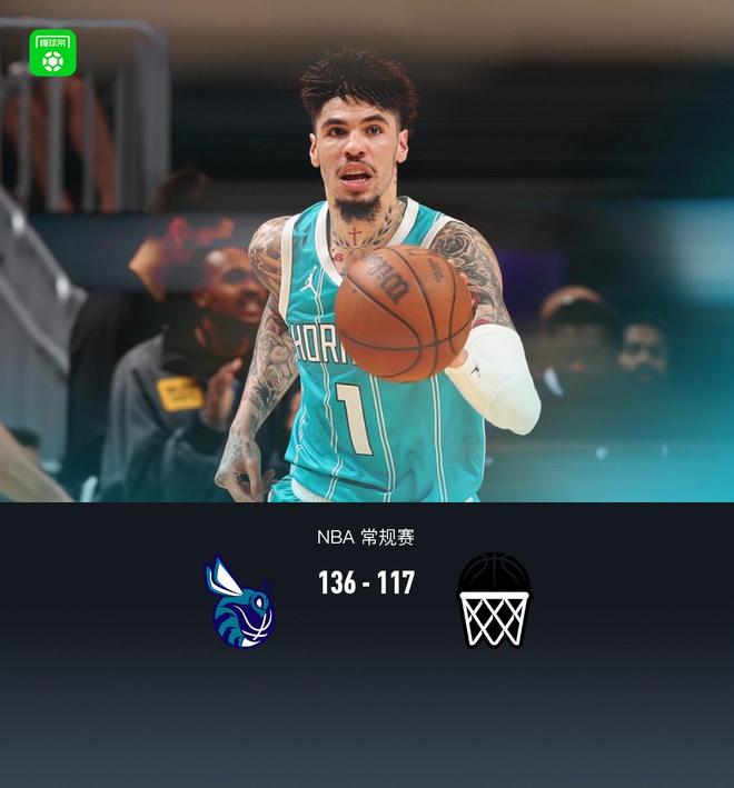 北京时间10月23日NBA 常规赛,夏洛特黄蜂对阵布鲁克林篮网。半场黄蜂77-60篮网,最终黄蜂136-117篮网。